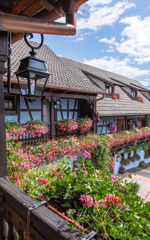 Chambre mansardée au confort feutré. La vue surprenante sur le vignoble alsacien est une invitation au voyage et nous plonge d’amblée dans une atmosphère reposante.